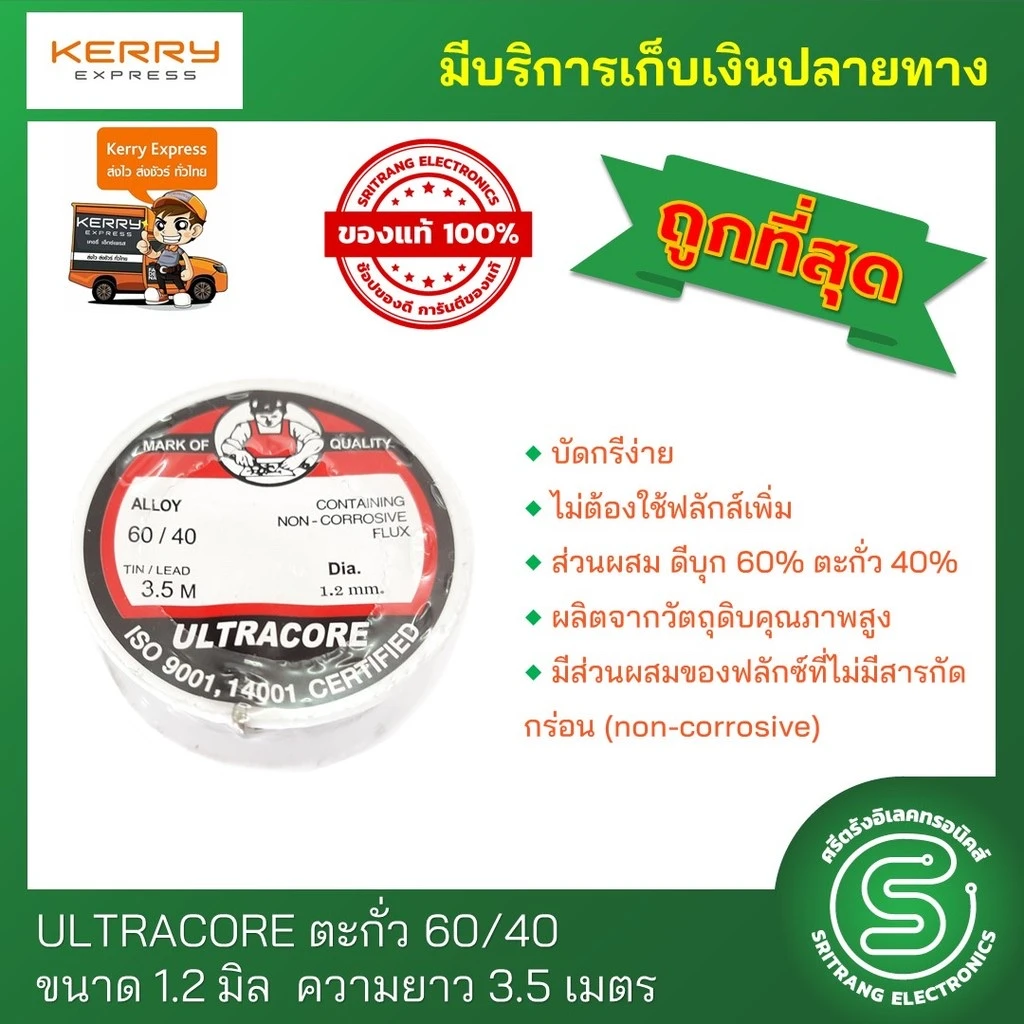 ULTRACORE ตะกั่วขด 60/40 เส้นผ่าศูนย์กลางขนาด 1.2 มม ความยาว 3.5 เมตร